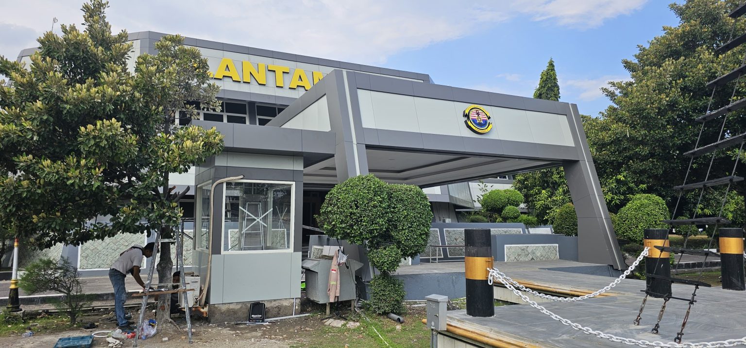 Sebagai aplikator ACP terpercaya, BPJ menangani seluruh proses pengerjaan — dari pemilihan material, pemotongan presisi, hingga instalasi pada seluruh permukaan gedung utama di kompleks Lantamal V.
